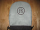 This novelty racquet cover is a great way to personalize and protect your pickleball racquet.  The pickleball cover is available in beige (pictured), medium blue (pictured), navy blue, black, camel, gray, dark brown, or sage green (pictured).  In the center, the player's initials are embroidered.  The cover is made of synthetic suede front and black fabric back with a drawstring tie.  Please give me the full name of the person.  The initials will be embroidered in this format:  first name, last name, middle name.  For example:  a monogram for Mary Alice Smith would be MSA, with the S being larger.